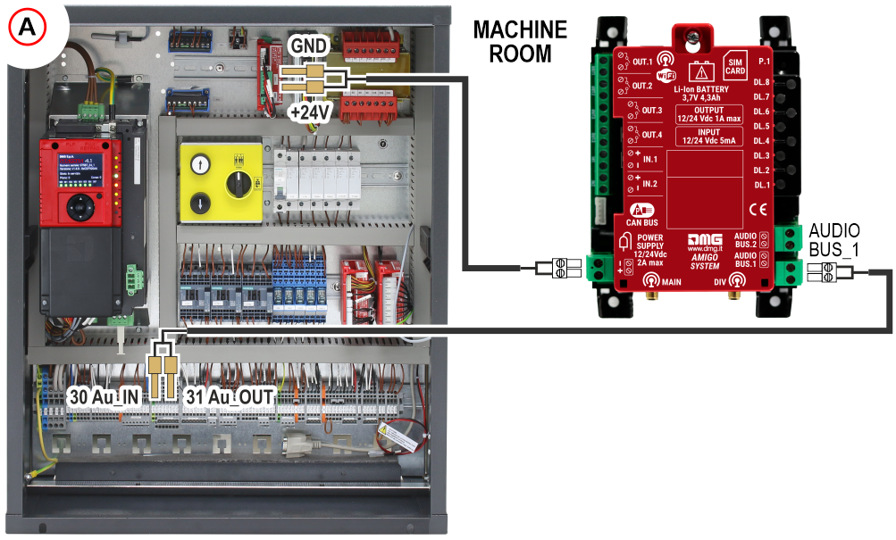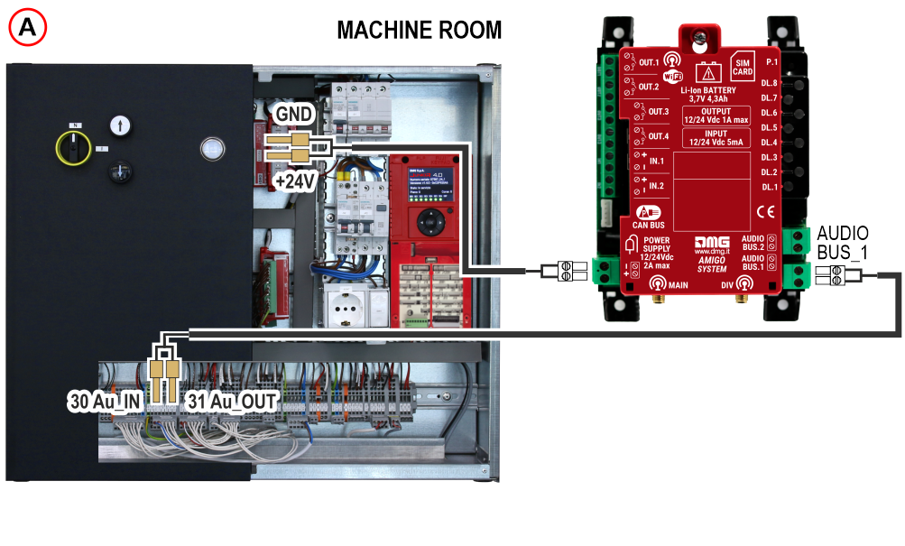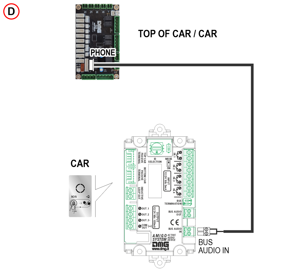 • 2 × 2-wire audio bus for connection of the audio devices; to the car via flexible travelling cable and in the shaft via drop cable