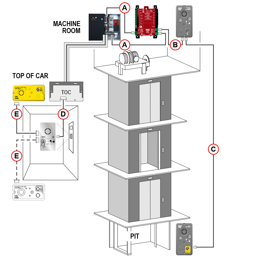 • Bidirectional intercom communication between the car and the machine room (ref. EN 81-20).