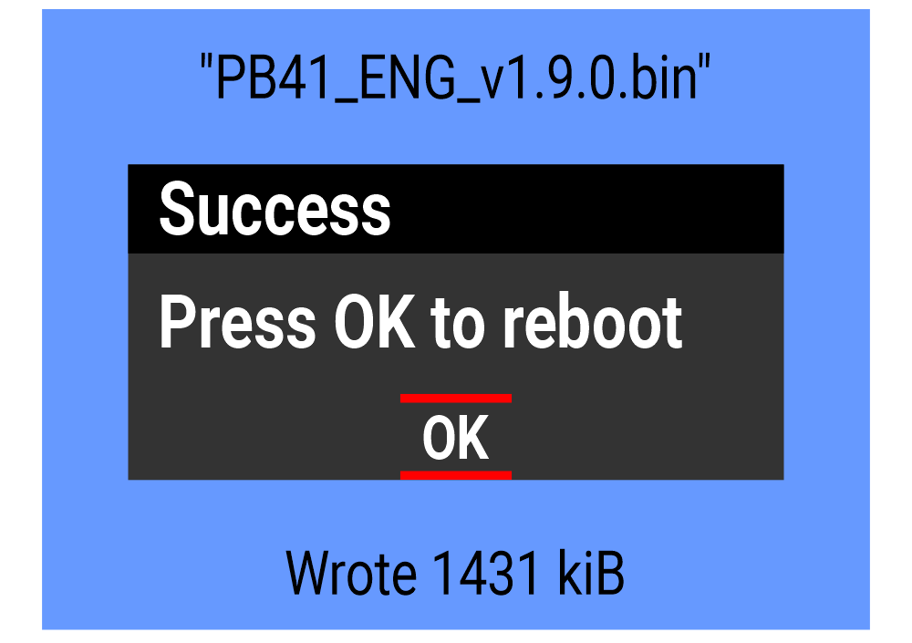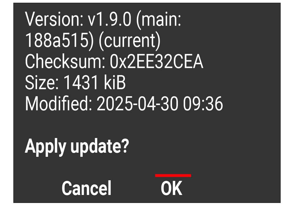Apply the update by pressing the OK button.