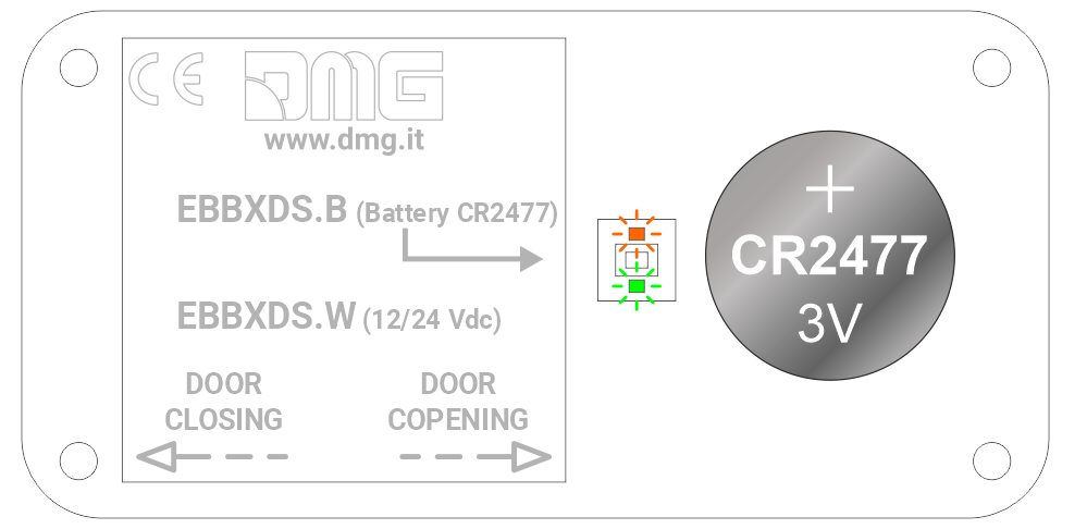 Remove the cover and install the supplied battery; the LEDs will flash alternately for a few seconds.