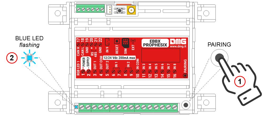 Press the pairing button on the control unit and wait for the blue LED to start flashing.