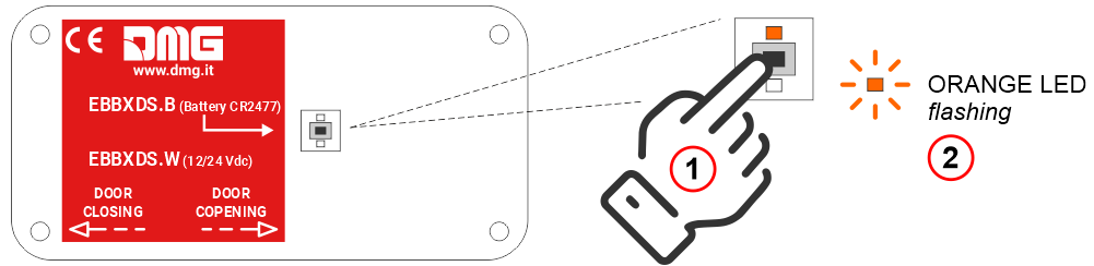 Press the pairing button on the door sensor, using a screwdriver, and wait for the orange LED to start flashing.