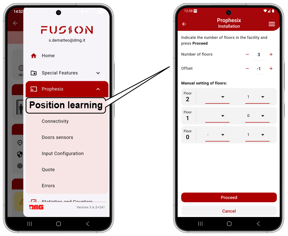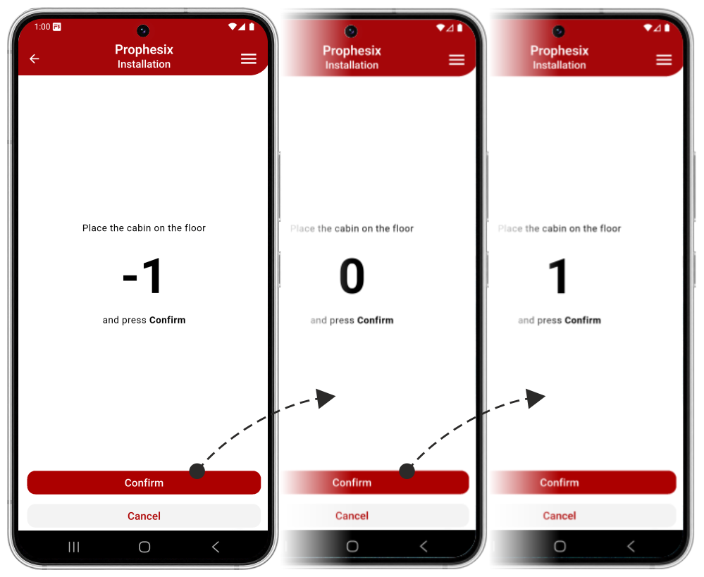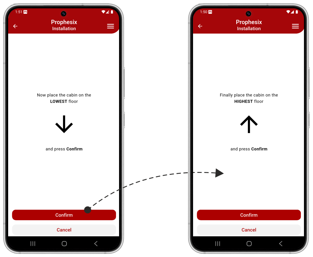 To put the system into operation, follow the guided procedure in the app, which learns the floor heights (inter-floor distances) by performing a series of cabin calls.