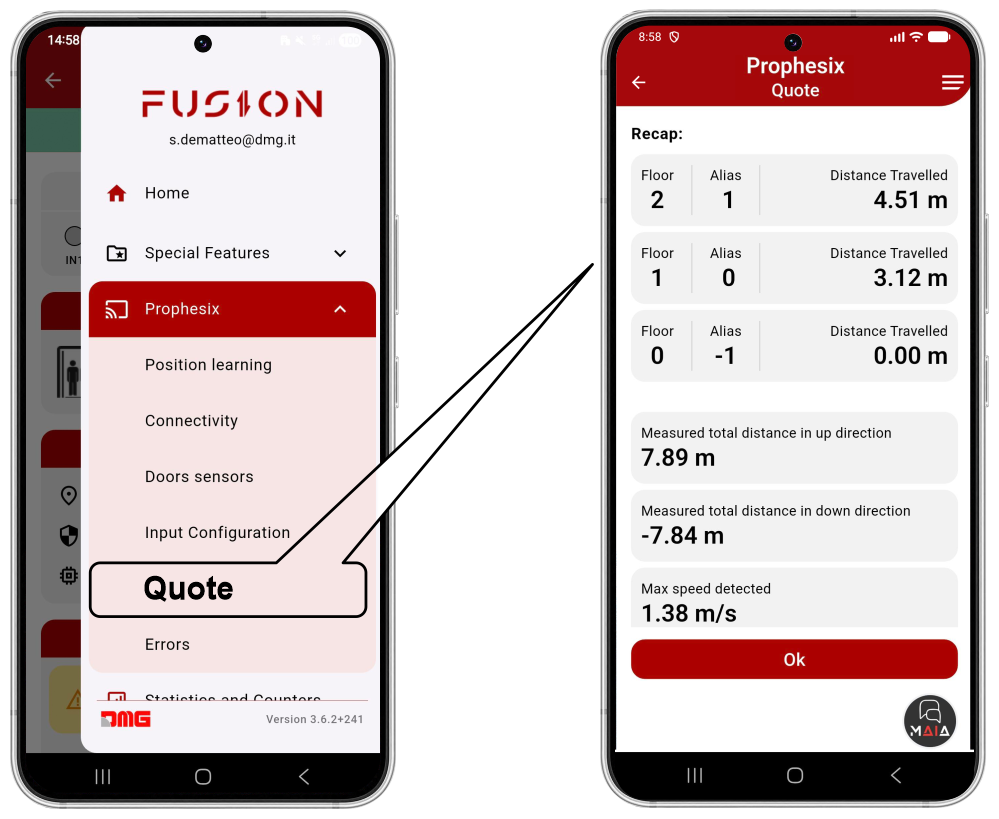 The acquired data may be verified in the “Prophesix – Quote” menu.